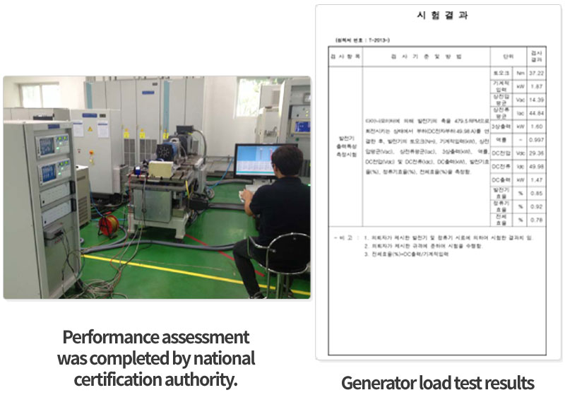 Performance assessment was completed by national certification authority / Generator load test results